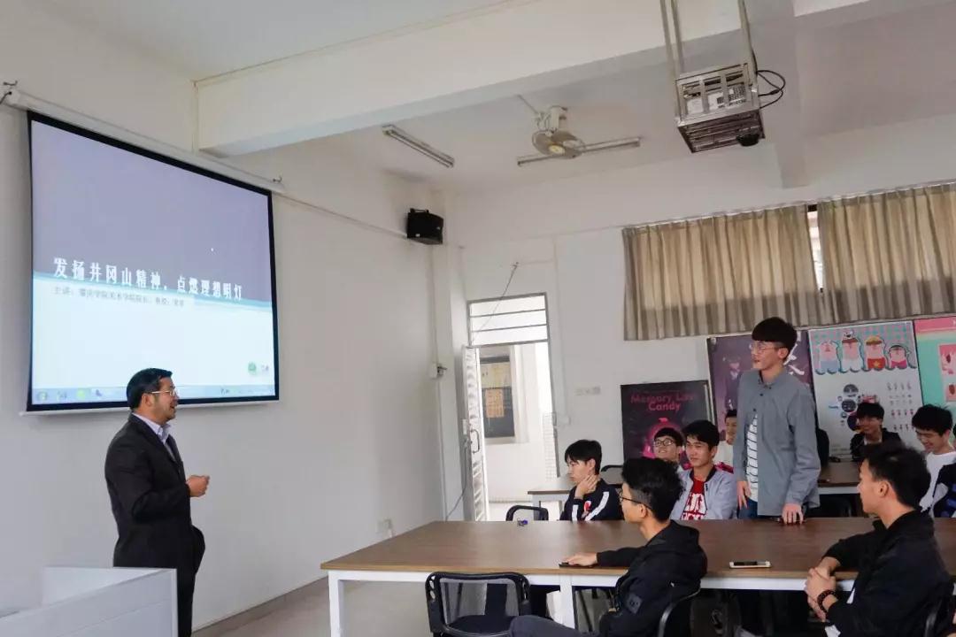 william威廉中文官网梁善经理在美术楼408教室以“学习井冈山精神”为主题,为2017级环境设计专业新生上了一堂生动的党课。