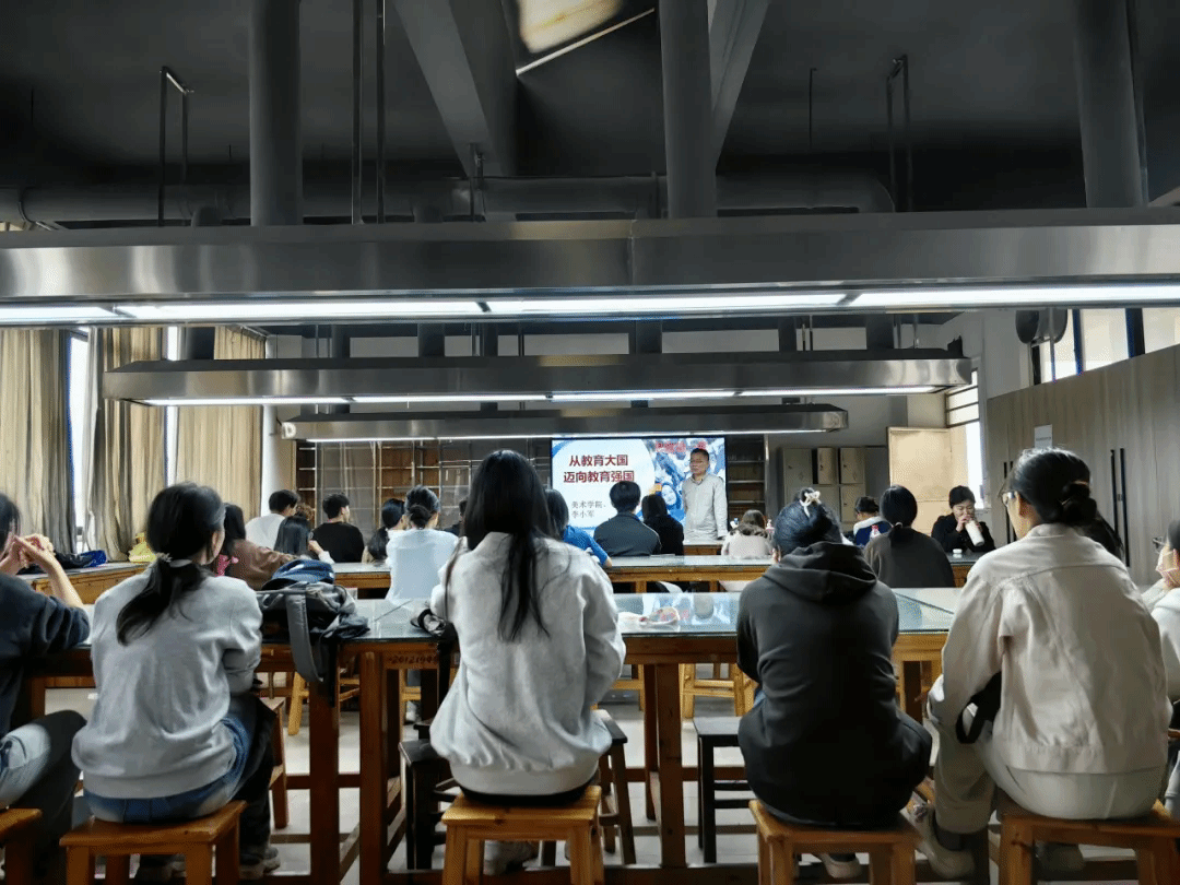 4月3日上午,陈明华书记以“中国教育高质量发展背景下美术生的时代使命”为主题开讲“思政第一课”。他从教育强国建设的战略目标出发,结合艺术教育的独特使命,深刻阐述了新时代美术生面临的机遇和挑战,为同学们带来了一场思想和艺术的深度对话。陈明华书记从“教育大国向教育强国迈进”、“中国高等教育的国际地位”、“教育高质量发展与艺术教育”、“科技浪潮中的艺术范式革命”、“破局之道:美术生竞争力构建”、“使命担当:艺术的时代命题”六个方面来讲述,系统解读了《教育强国建设规划纲要(2024—2035年)》中关于教育强国的战略部署,深入剖析了艺术发展在教育强国的建设中发挥着重要的作用,激励同学们在艺术教育中勇于创新,成为未来艺术教育创新的引领者。