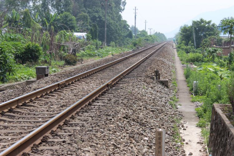 不过呢,好像每个人都跟铁轨特别亲热一样,每一个人都喜欢去那里拍照,尤其毕业照的时候,大家都总会想去跟这个亲爱的铁轨拍拍照,留影一个,多年想起来印象最深刻的会不会这一条铁轨呢。但是呢,这个铁道口是有人看守的,每次你稍微再铁轨多停留几秒钟,管理的大叔就会吆喝你让你赶紧离开,人家说不安全呀,又影响交通呀,OK,走就走嘛,不拍就不拍嘛,反正我已经拍了两张了,哇哈哈。