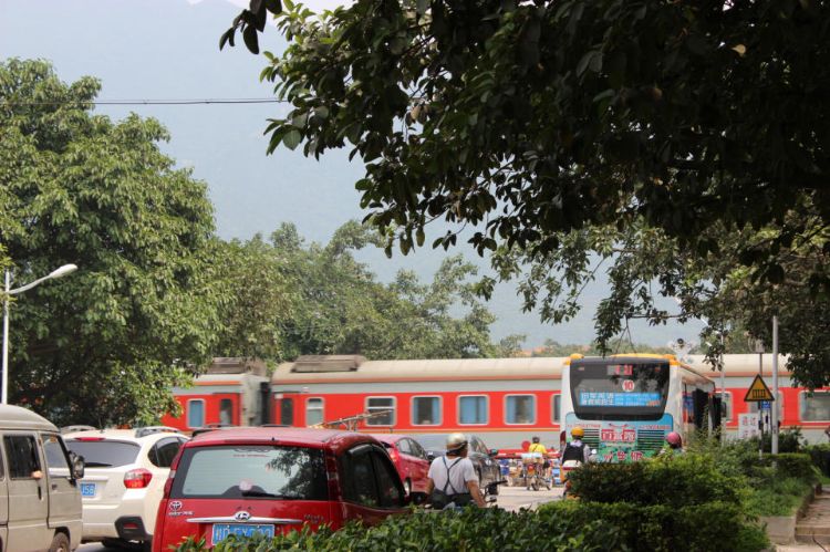 偶尔呢,坐公交出市区总是会碰到要给火车让道的情况,相信大家都试过的,这个就不赘述了,如下图。