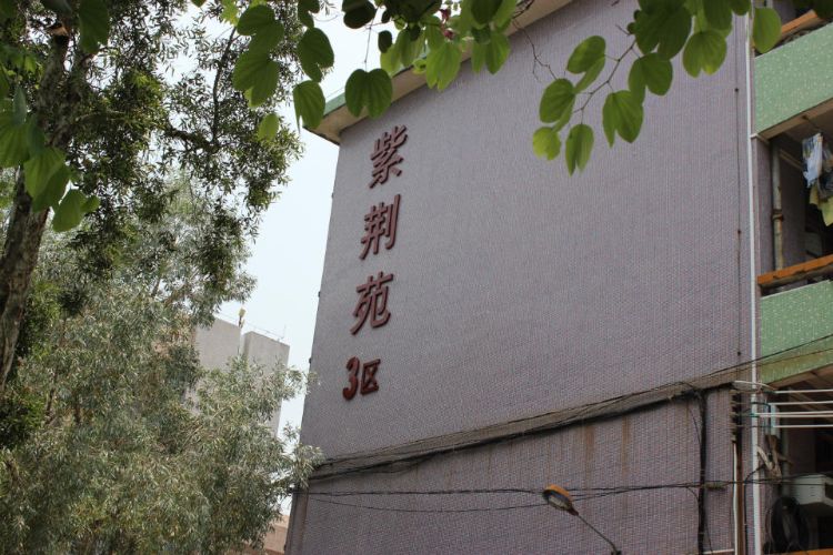 临时找不到拍到一整条紫荆校道的,也找不到铺满紫荆花的校道,姑且用这一张只拍了一半的好了 。