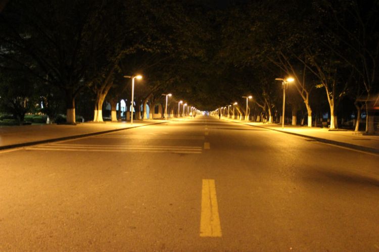 一眼望不到尽头的主校道,好像到最后两边的路灯交接到一起了一样。