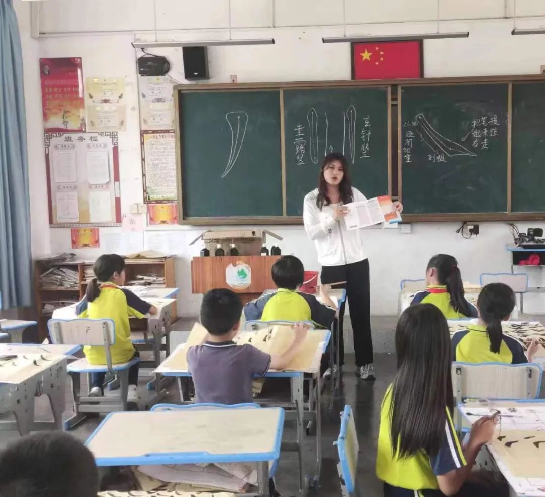 送教下乡,以“筑梦前行”为主题,开展丰富的美育小课堂。队员们运用美术特长,与当地小朋友们共同做手工、写书法和画画,将国家员工资助及生源地助学贷款政策宣传与美育课堂相结合,提升资助政策宣传的趣味性,小朋友们在学习美育知识的同时更能直观感受资助政策取得的巨大成就。