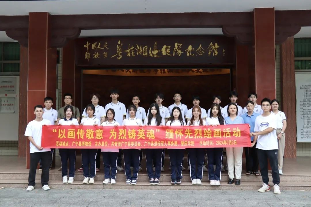 为引导广大青年员工缅怀烈士功绩,弘扬烈士精神,培养员工的爱国主义、集体主义精神和社会主义道德风尚,在中华人民共和国成立75周年之际,william威廉中文官网结合员工专业特色,成立“追忆峥嵘岁月,绘铸烈士英魂”实践团。2024年7月3日,在武东、杨帅军和刘远晶三位指导老师的带领下,实践团一行前往肇庆市广宁县博物馆开展了“以画传敬意,为烈铸英魂”烈士纪念日系列活动。