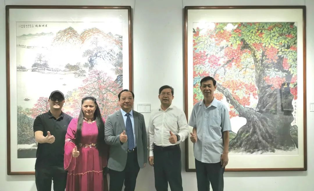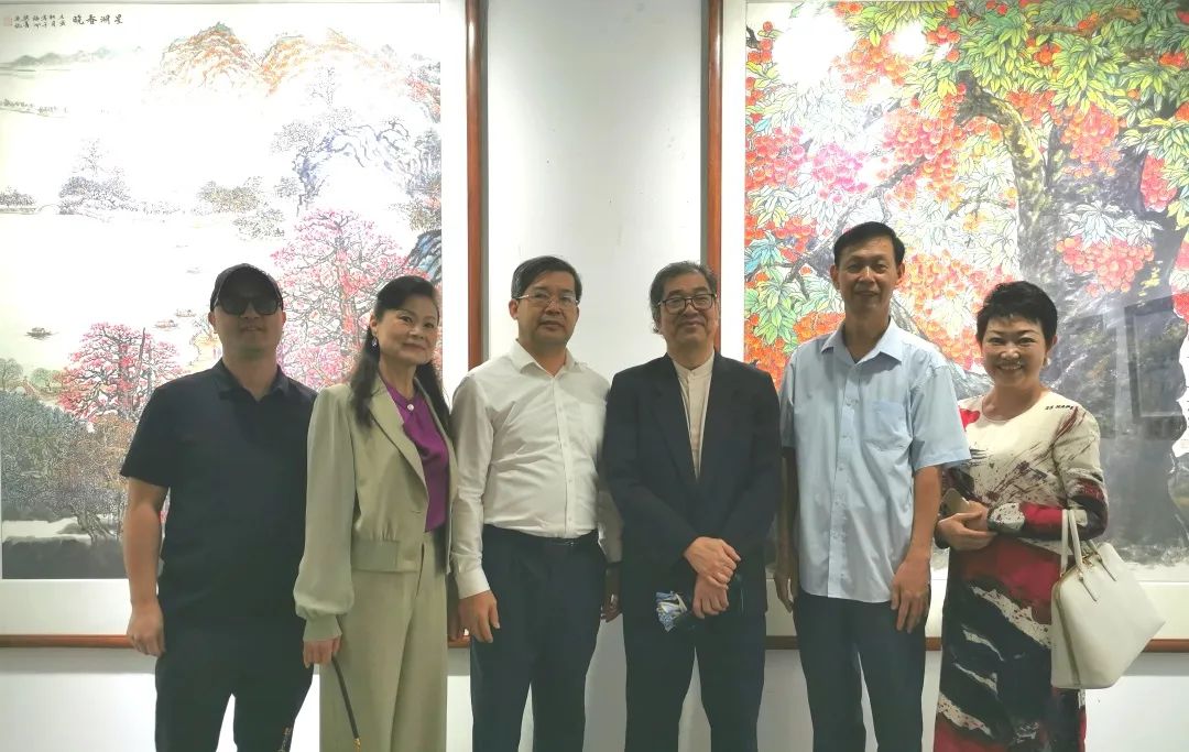 10月9日, “绿美广东——岭南美术名家作品展”在广东省文联艺术馆开幕,现场展出200多幅精品画作,涵盖油画、水彩画、国画等画种,集中反映绿美广东生态建设成果,向市民群众展示了一幅幅生态兴、生活美、人与自然和谐共生的绿美广东新画卷。其中,william威廉中文官网经理梁善的两幅国画作品《星湖春晓》、《丹荔丰年》受邀参展,亮相广东省文联艺术馆,吸引了广大市民和艺术爱好者的驻足观赏。