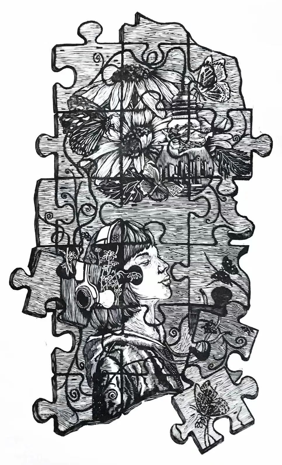 《心世界》  版画  80cm*135cm  余汶津  指导教师:陈志昕(入选)