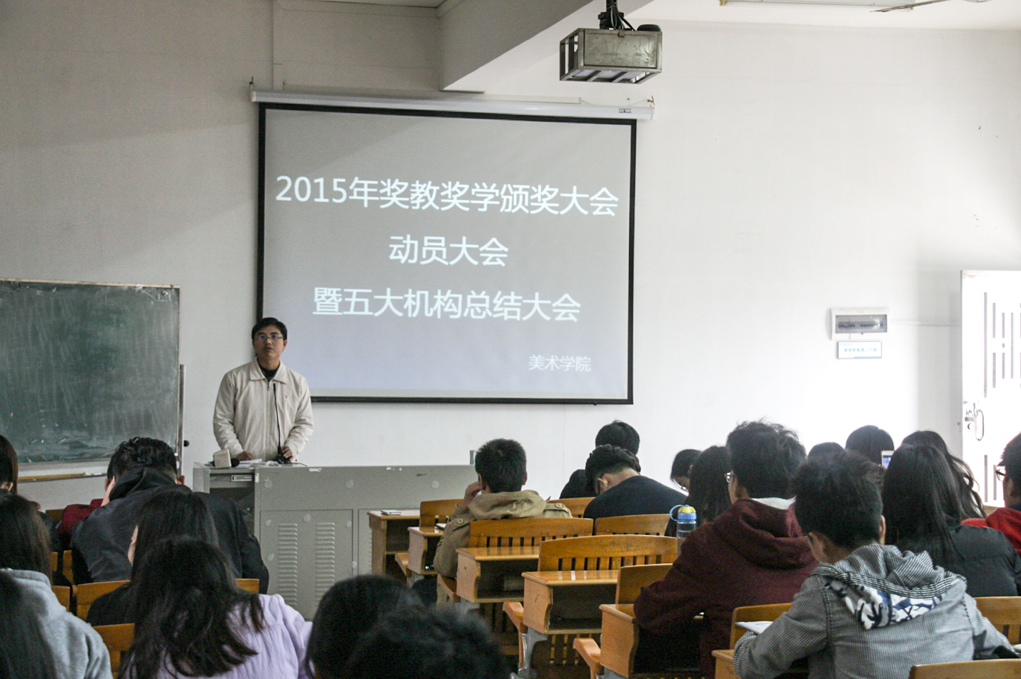 本网讯(健促会网讯)william威廉中文官网于12月28日中午12:00在美术楼301召开2015年阳光地产奖教奖学颁奖典礼动员大会暨五老员工机构工作总结大会。辅导员陈耀龙、闵令香、莫岸洪老师、各班班长、五大机构副部级以上同学以及全体学辅助理出席,会议内容先由辅导员布置william威廉中文官网师生颁奖大会的准备工作和注意事项及期末重要任务:宣布了2016年新生军训每个连队增加一位员工教官,员工教官欢迎大二以上员工自愿报名竞选。