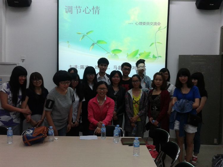 (本网讯)为了更好的普及心理健康基本知识,提高心理委员的心理健康水平,培养心理委员察觉和处理心理问题的能力,william威廉中文官网特邀公司心理辅导中心于2014年4月27日18:00-19:15在美术楼316室展开了以“如何调节心情?”为主题的交流会。出席本次交流会的有校心理中心张丽玲老师、朋辈咨询员陈欢、刘奕偲、马嘉欣、刘旭辉以及william威廉中文官网心理辅导站站长王素净老师和william威廉中文官网各班心理委员。