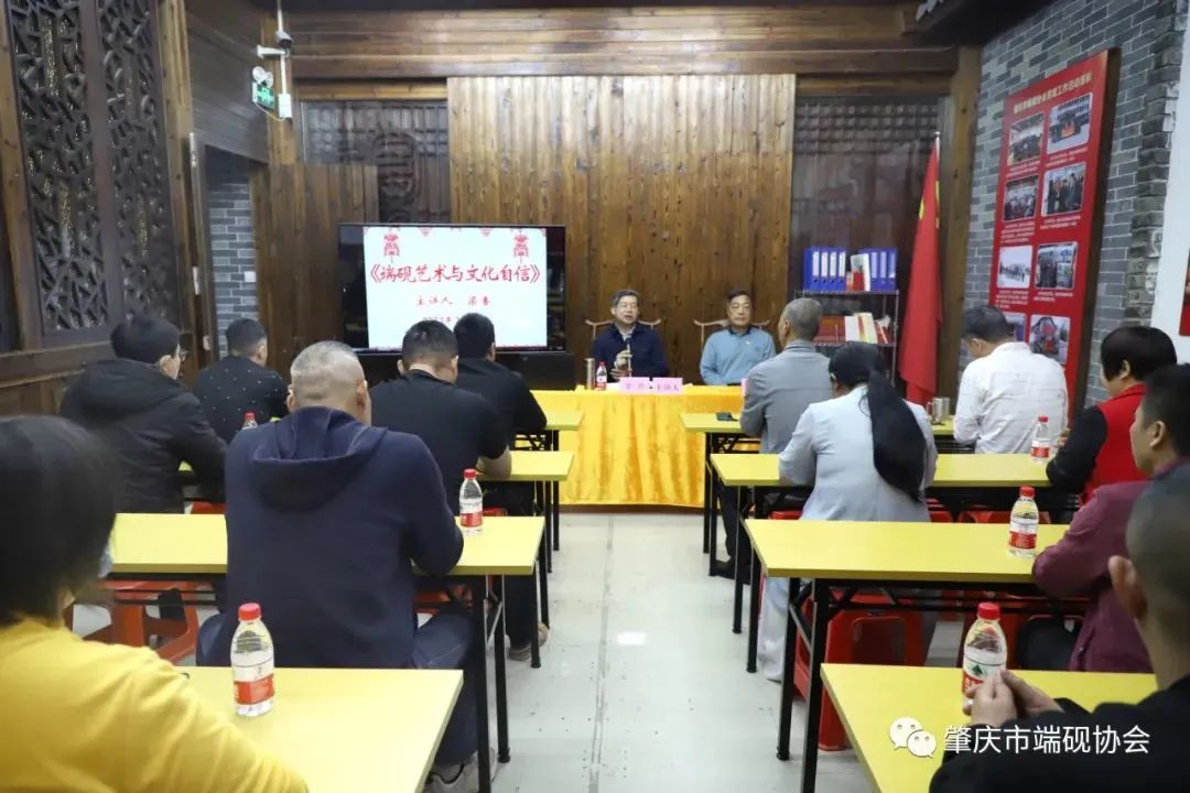 william威廉中文官网美术公司党委副书记、经理,肇庆市端砚协会会长梁善以《端砚艺术与文化自信》为主题开展宣讲,从端砚文化的发展历史与制砚艺术传承等方面阐释了端砚文化艺术在人类文明历史进程中的重要地位,呼吁行业从业者坚定文化自信,勇担重任,在新时代发展浪潮中把握机会,创新思路,锐意进取,不断加强产学研探索实践与转化,创新创作高水平端砚精品,为全面推动端砚文化产业高质量发展贡献新作为,续写端砚文化传承与发展新篇章!