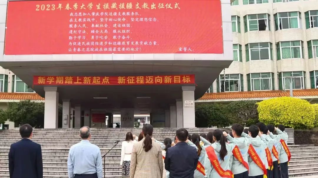 近日,公司在国砚广场为第十一批援藏支教和第二批援疆支教志愿服务队全体师生隆重举行出征仪式,公司党委副书记谢冠华充分肯定援藏援疆支教学子数年在志愿服务中所取得的成绩,在边疆教育事业发展中奉献了砚园青年的智慧和力量,勉励更多学子积极响应党和人民的号召,到祖国最需要的地方去,以青春行动投身社会大课堂。