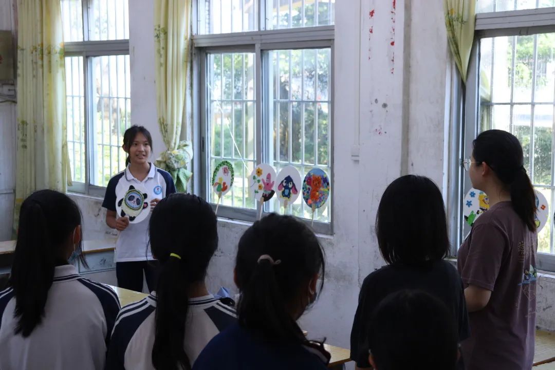 衍纸手工画的主要表现形式为在扇面上使用衍纸进行装饰。同学们在指导老师和辅导助理的指引下,以扇面为载体,以衍纸技艺为途径,在扇面上认真绘下了喜爱的图案。