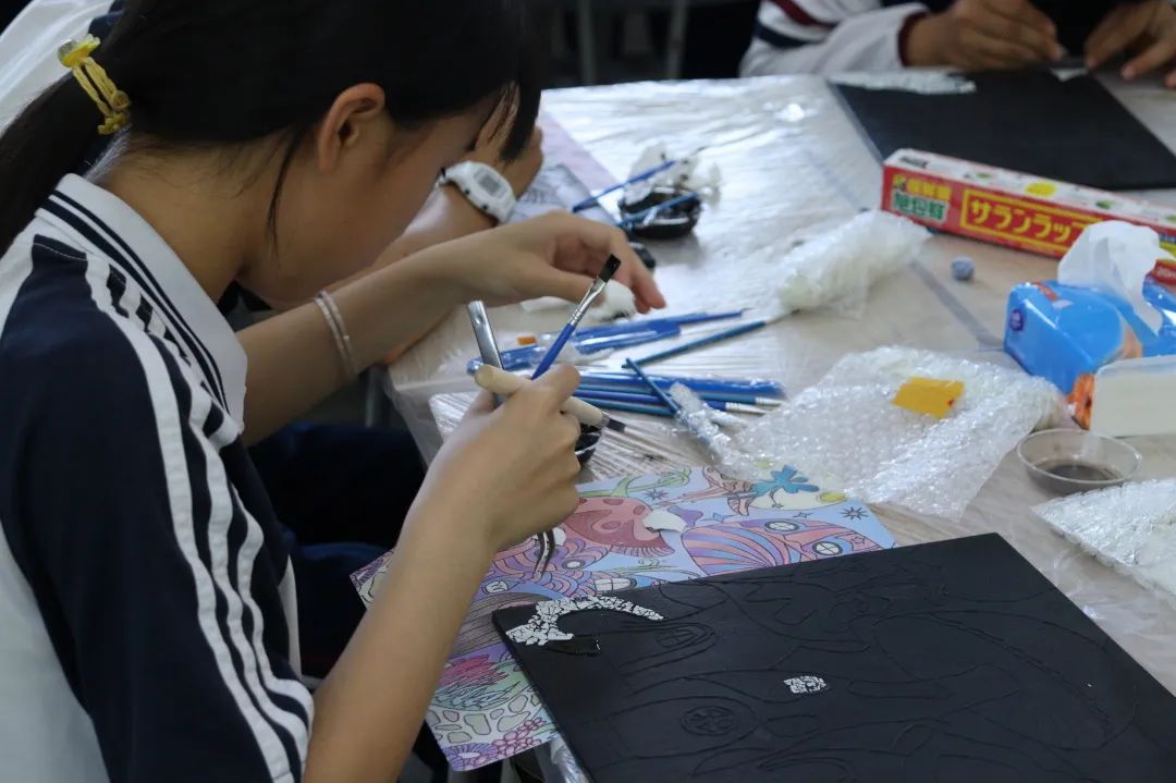 漆画工作坊为期7天的课程至此告一段落,希望通过此次漆画知识的普及、作品创作的初试和作品展览等活动,让连麦中学更多员工了解中国传统漆画文化,在浸润员工的同时,能吸引更多青少年参与到传统文化的传承、创新和发扬当中,增强青少年对我国传统优秀文化的自信!