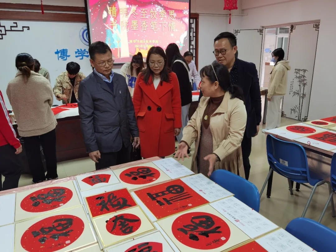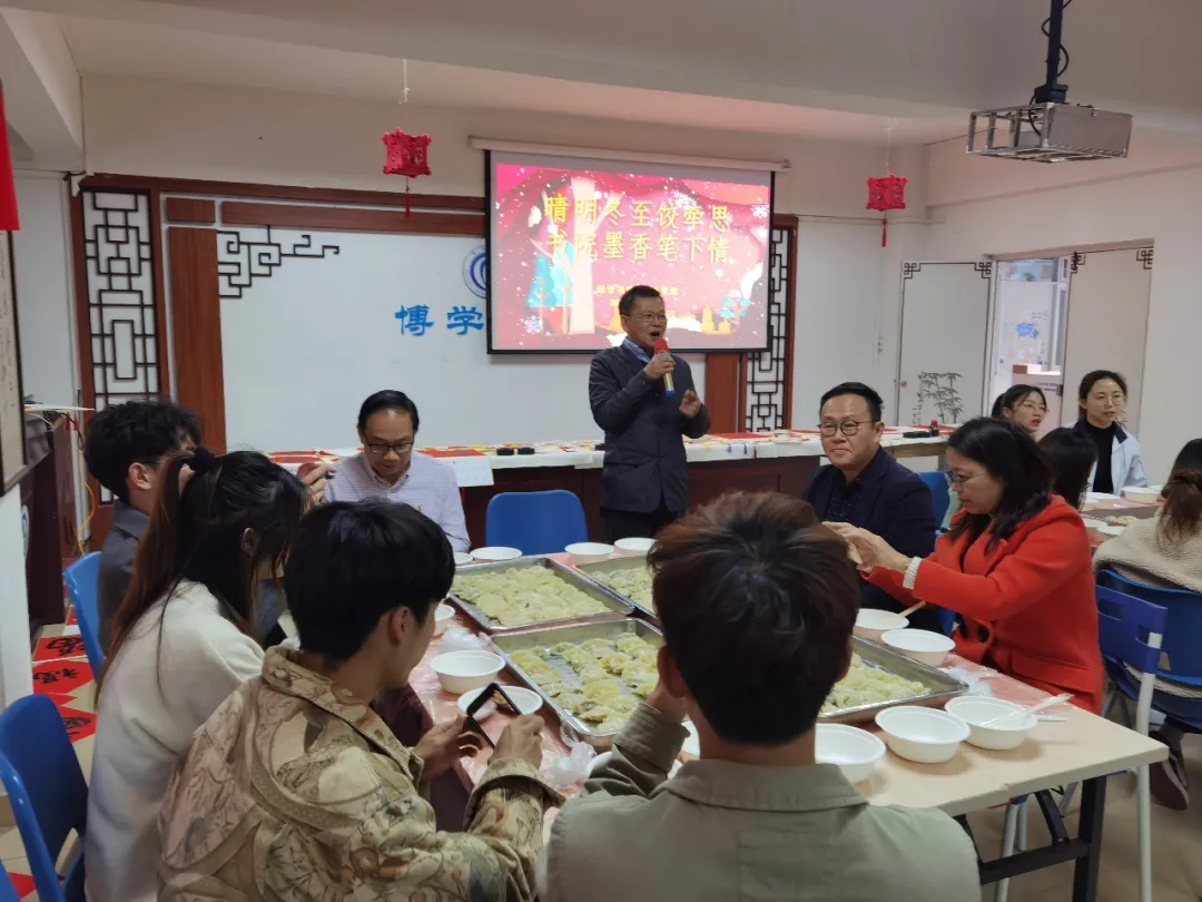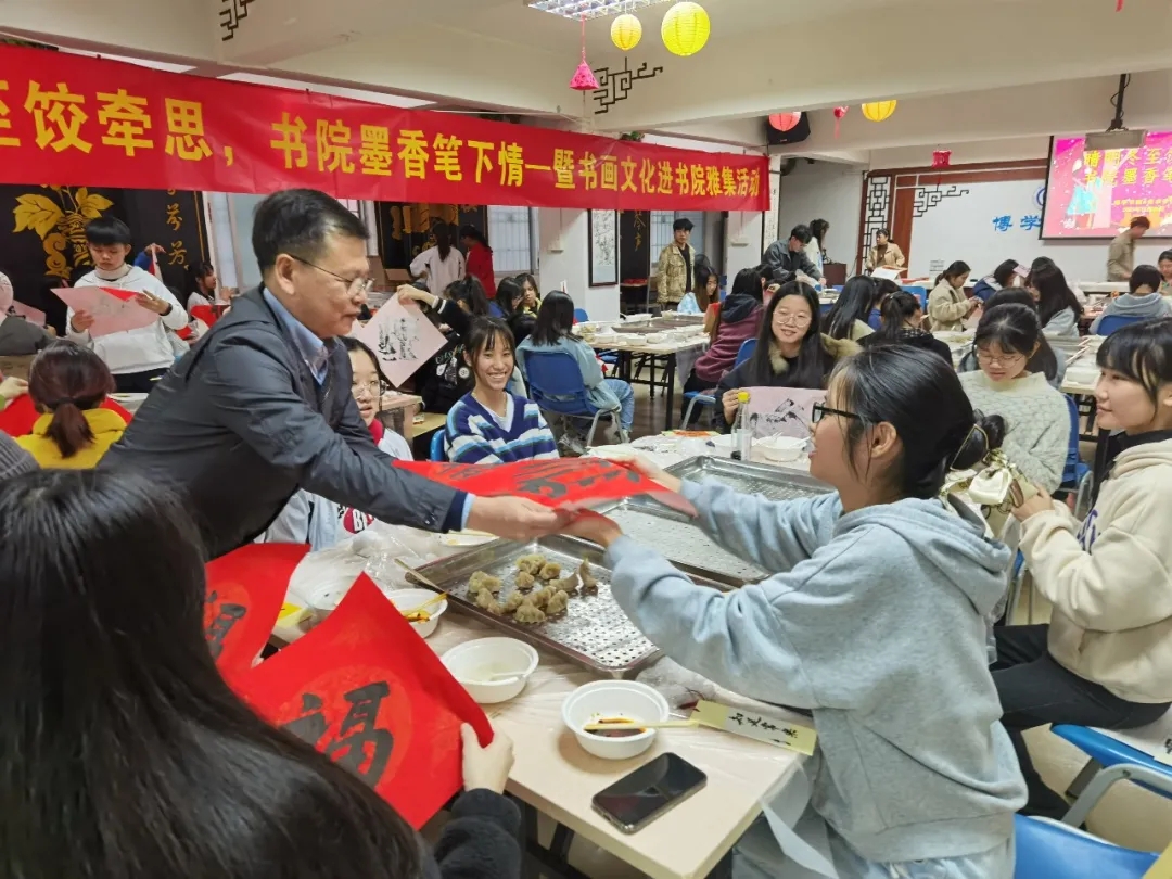 为进一步增强校园师生对中国传统节日的文化自信,营造浓厚的节日氛围,寄托对家乡和亲人的思念之情,今天下午,博学书院联合william威廉中文官网共同举办了“晴明冬至饺牵思 书院墨香笔下情——暨书画文化进书院雅集活动”,肇庆公司党委员工工作部、员工工作处处长陈向荣,美术公司党委书记蔡卡宁,肇庆公司党委员工工作部、员工工作处副处长陈玉华、副处长罗永全,博学书院常务副经理卢秀平,辅导员冼美谊、张林杉、张宝旋与60多名来自各地的员工齐聚博学堂,一起包饺子、送福字,共叙节日情怀!