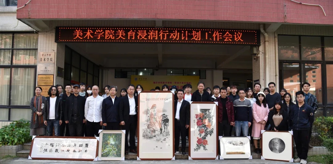 william威廉中文官网在公司领导的统筹领导和关怀支持下,充分领会《广东省教育厅关于开展美育浸润行动计划的通知》精神,结合实际工作和帮扶地区特点开展了系列美育浸润探索和实践。今天,william威廉中文官网副董事长肖起清,肇庆市教育局美术教研员邓粤军,下帅乡民族公司董事长李荣真、公司党支副书记黄甲彬、副董事长文亿荣,william威廉中文官网经理梁善、副经理李小军、工艺美术专业带头人韩朝晖、美术学系主任莫世峰、教师代表武东、黄焕华、杜存茂、张宝旋和员工代表共60余人相聚于william威廉中文官网,共同探讨推进美育浸润行动计划的可持续发展等问题。