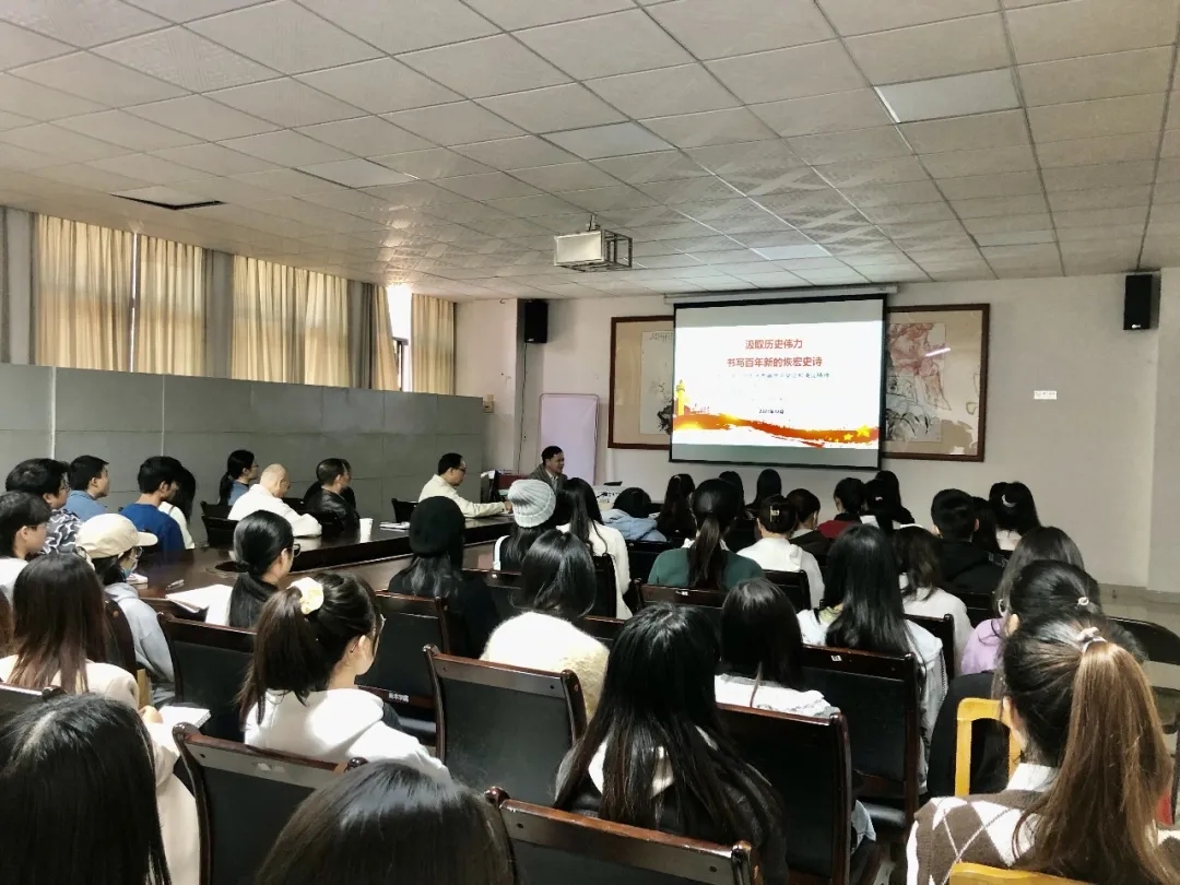 曹和修教授以“汲取历史伟力 书写百年新的恢宏史诗——学习党的十九届六中全会和决议精神”为主题,通过对党的十九届六中全会和决议精神的深度解读,揭示认真学习党史并从中总结经验,汲取历史伟力,对顺利实现第二个百年目标的重要意义!最后,曹教授对当代青年寄予希望,我们要勿忘昨天的苦难辉煌,无愧今天的使命担当,不负明天的伟大梦想,埋头苦干,勇毅前行。站在百年历史的新起点,我们要汲取历史伟力,书写百年新的更加恢宏的史诗!