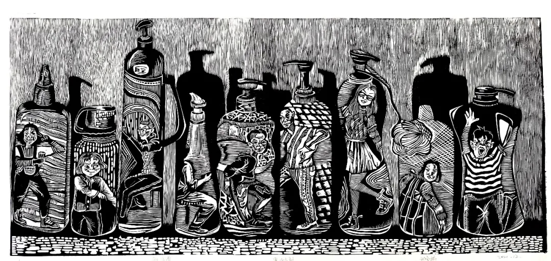 刘泳琪 《舒适圈》 黑白木刻 90x40cm 2020年