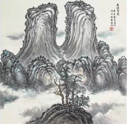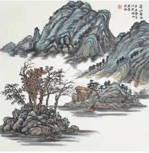 梁善 奇山秀水 68cm*68cm 纸本设色 2021年