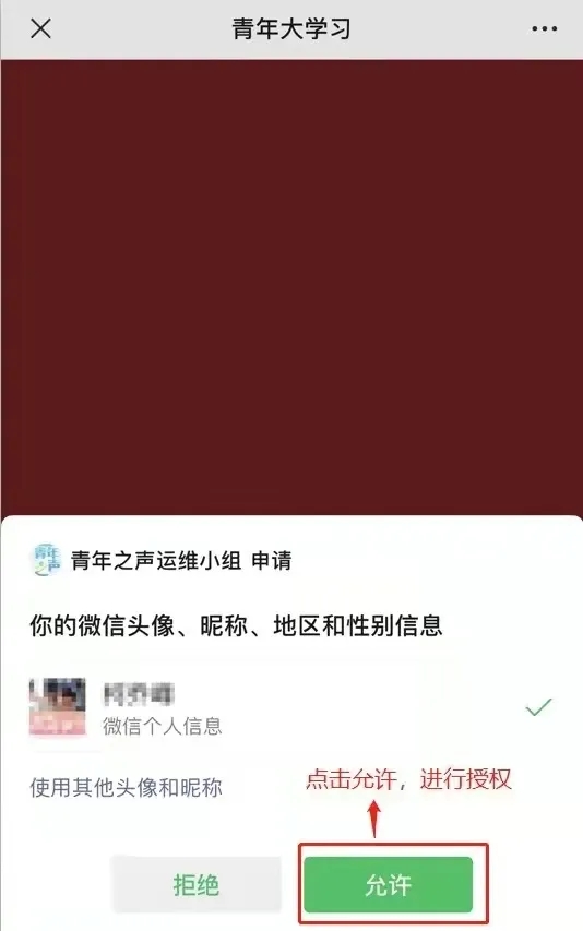 2.青年群众扫描该二维码,点击“允许”授权后即可学习,参学数据会记录在生成该二维码的团组织上。每期每名青年群众参学仅记录一次。