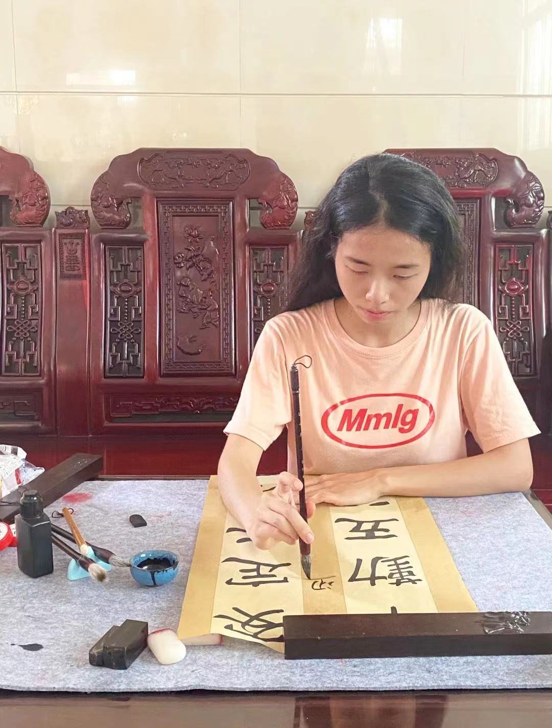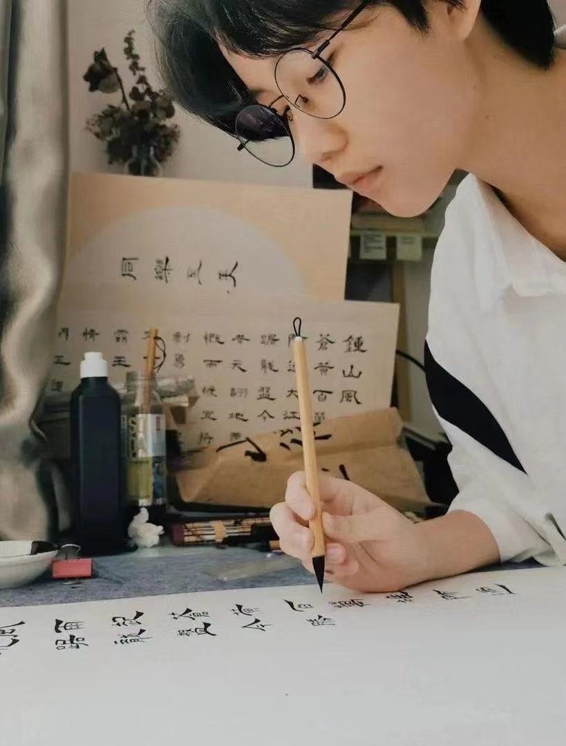 很荣幸能够参加到“三下乡”书法类的线上志愿活动。书法是我专业必学课程,很高兴能够在暑假期间继续写书法,可以巩固书法基础并更进一步。暑假期间,它不仅充实了我的时间,更能平息我郁闷烦躁之心,况且,写好的每一张作品都能让我获得成就感,提高自信心。同时,通过每周日老师在线上指导,让我们的书法作品得到完善,接近完美。我知道书法是一门博大精深的奇特艺术,它充满了各种形象的美,各种风格的美,它内涵丰富,既看形,又重意,说白了就是要有精、气、神,要感悟所写的情境,融入其中,有神韵、有美感的字,我觉得学习书法有很多益处,它可以培养我们的艺术修养,陶冶高尚的情操,提高文化素质;可以逐步养成细致耐心、自觉认真的良好习惯,同时还有益于意志的锻炼。参加此活动有收获有感悟也有进步。