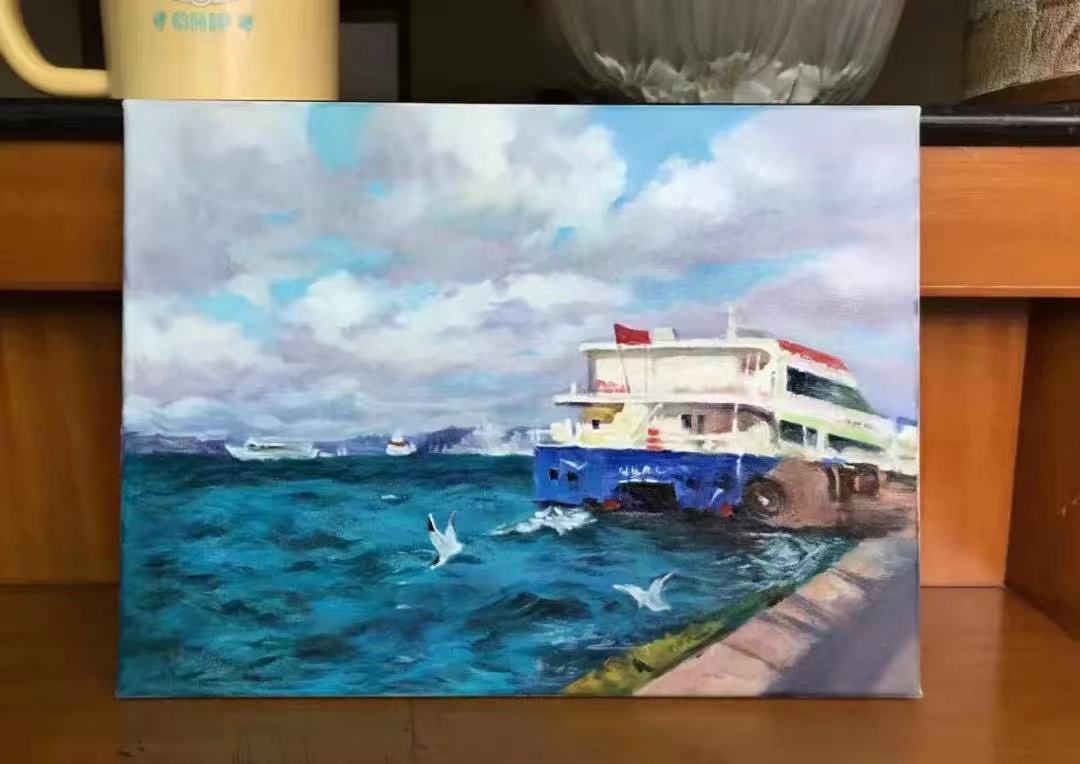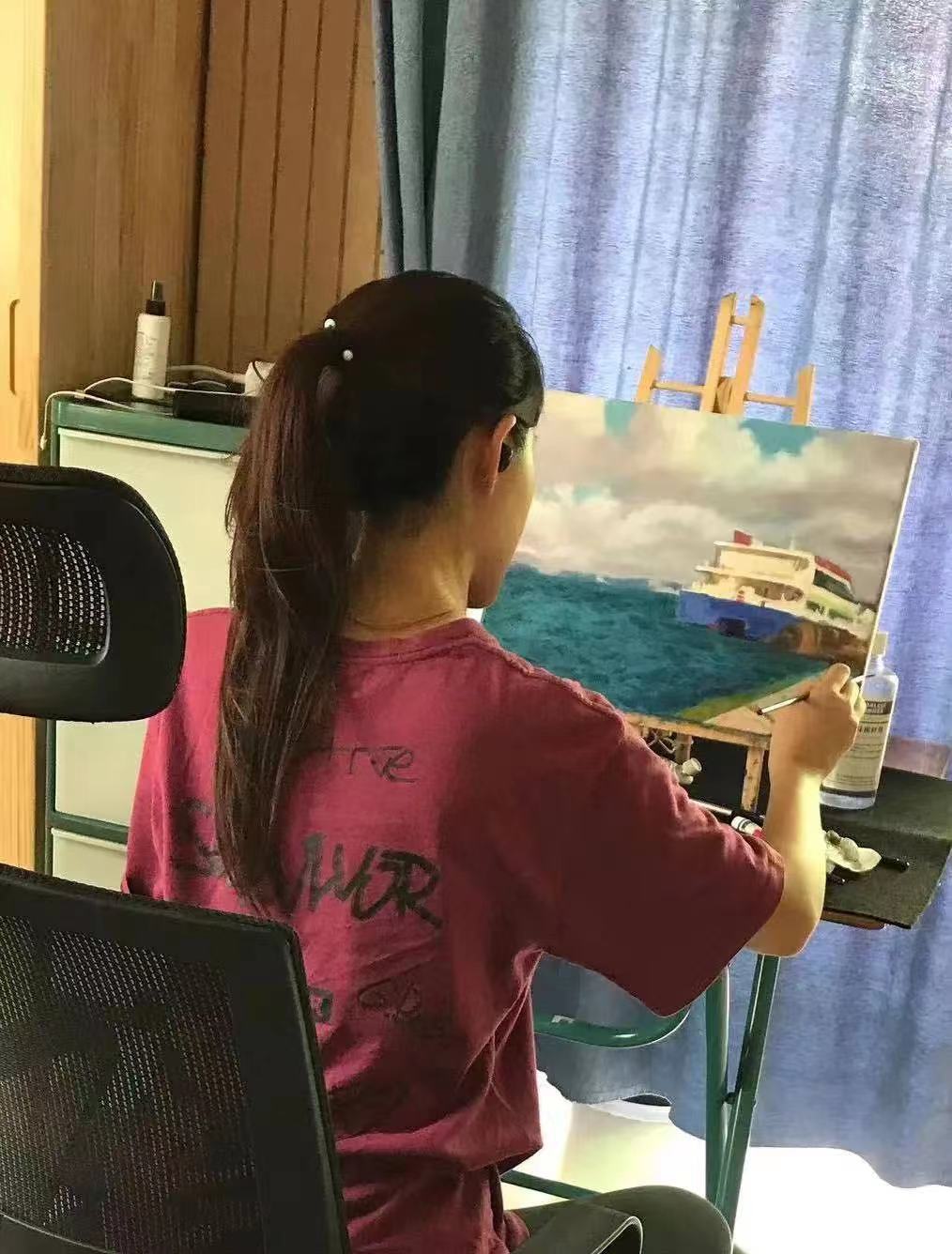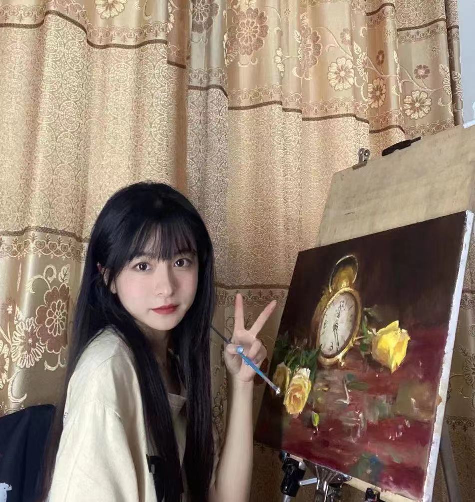 此次“三下乡”活动我们利用暑期进行党史等题材相关的油画创作,并赠予村民用于装饰家居。这不仅仅能够在家锻炼自我的绘画能力,还可以通过艺术给村民们传播党史等知识、美化他们的生活起居环境,更给我的作品富有了更有价值的意义。我希望送给村民们我的作品时他们是快乐的幸福的。期望我以后还有机会参与此类实践活动,以所学知识服务乡村文化建设,展现青年人的使命担当,并在此过程中不断提升自我,完善自我,实现个人价值。