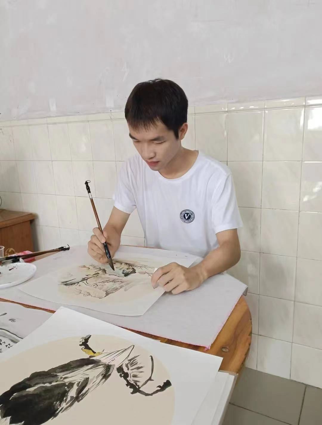 志愿队结合报名者的个人专业和特长,将队伍分为油画、国画、书法三个小组,并各自有指导老师对队员们进行线下和线上的培训与指导。队员们利用暑期居家进行百年党史、美丽乡村等题材的油画、国画和书法创作或临摹,开学后一并组织赠予乡村村民用于装饰家居,助力新时代的新农村建设。