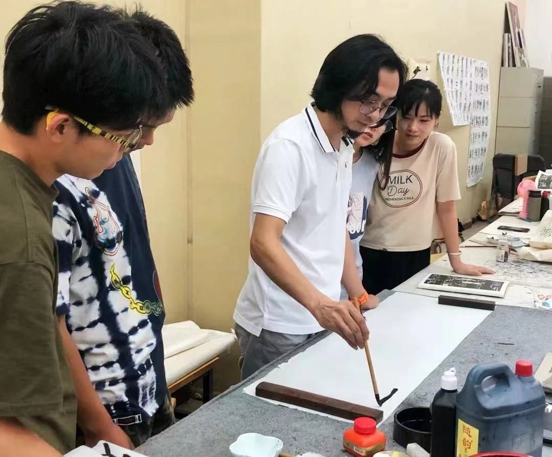 另一支队伍为美育浸润与党史学习志愿服务队,队伍分为手工艺、国画、版画、书法四个工作坊,由专业指导老师带领队员们到怀集县下帅乡民族公司为当地员工开展与党史相结合的“美育浸润”服务。希望通过形式丰富的校园书画教育,营造公司良好艺术氛围的同时培养少数民族员工从小学党史、听党话、跟党走!