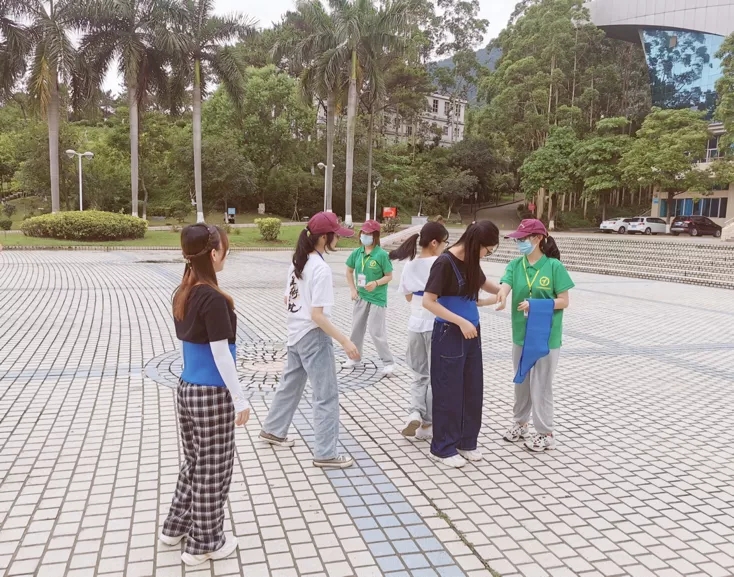 这最后一场游戏,作为蛇尾的成员向蛇头发出指挥命令,蛇头则顺着蛇尾的指挥小心前进,蛇头和蛇尾的成员不断调整战术,而中间的成员们则是一边跟着蛇头前进,一边观察着游戏全局,大家都在游戏中快乐地互动着。