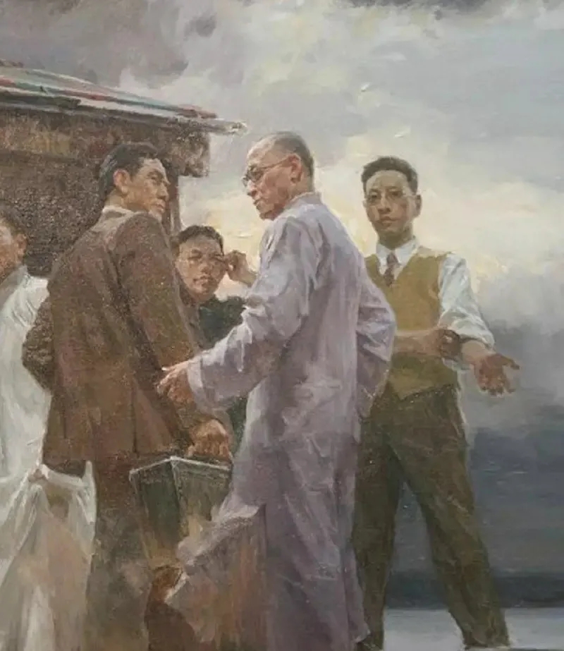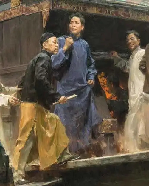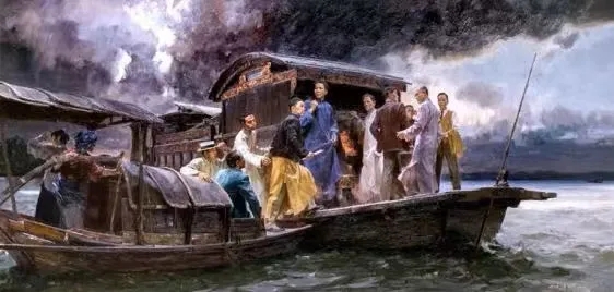 今天给大家介绍一下由何红舟、黄发祥据此共同创作的油画《启航——中共一大》