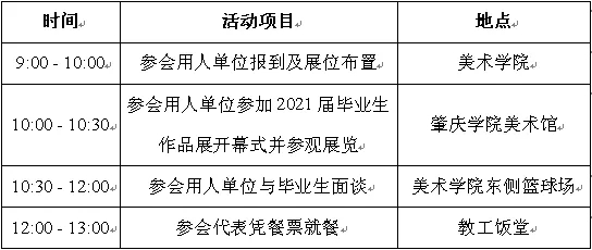 2、招聘会时间为2021年5月12日(星期三)上午10:00—12:00,本届招聘会不设开幕式及闭幕式。请各参会用人单位按时报到,非特殊因素,请勿提前离场。