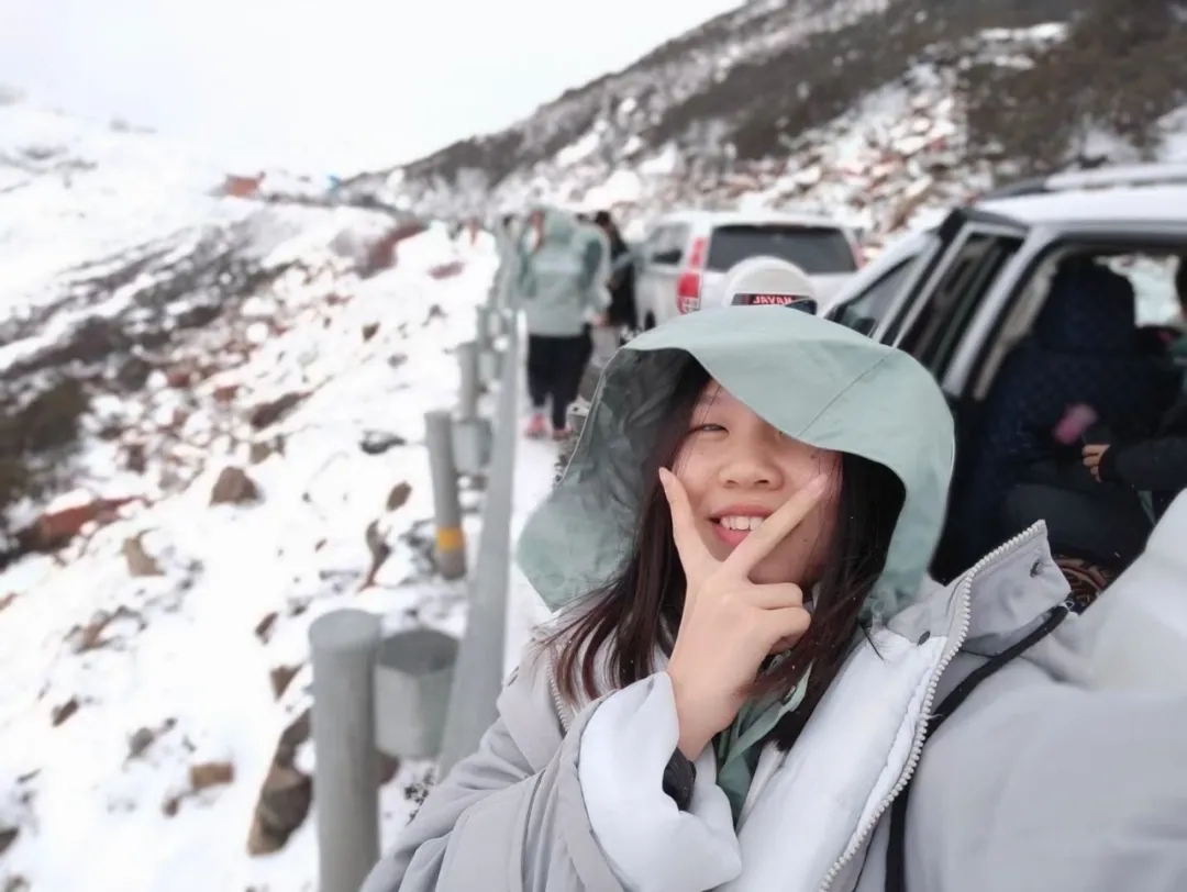 冰冷的雨雪天气和翟思婷脸上阳光般的笑容