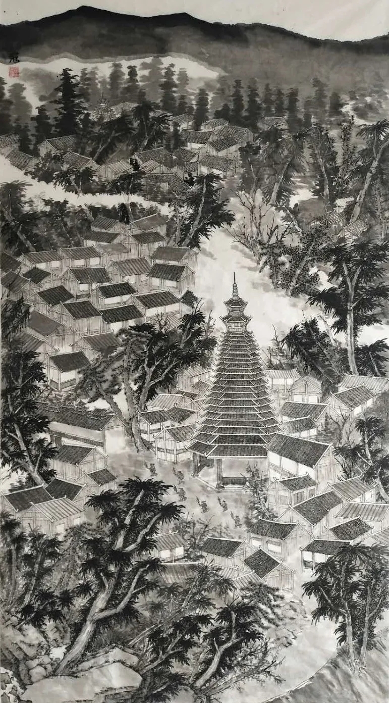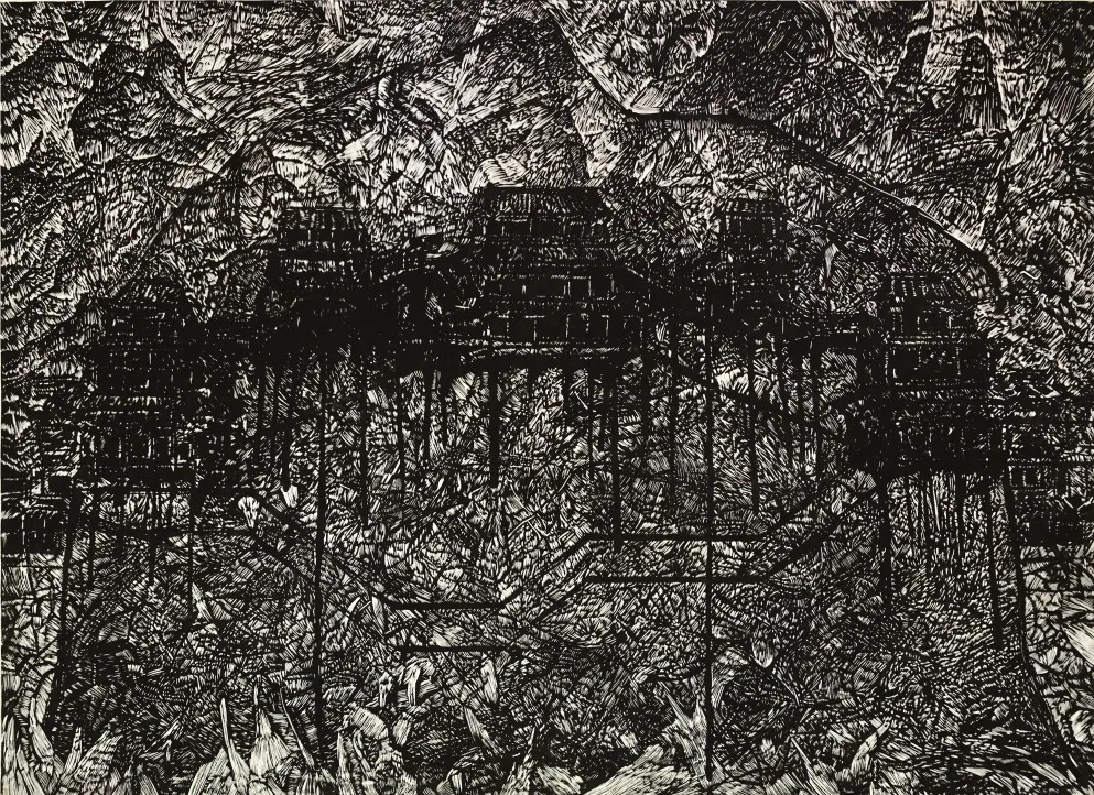 余一军 《百喻经·三重楼》 版画 119cm*88cm 二等奖
