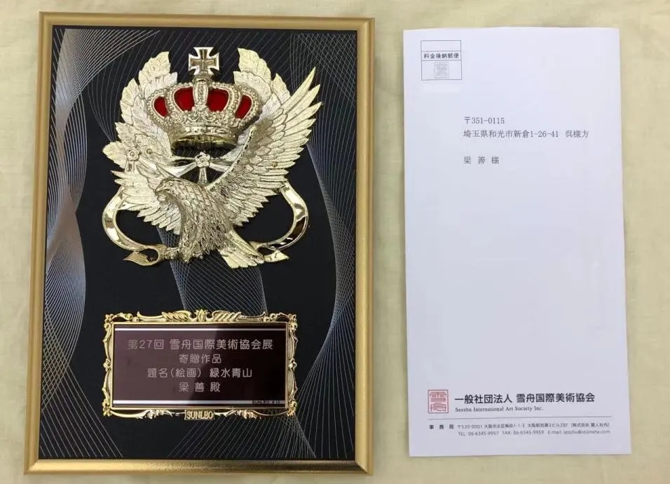 近日,由雪舟国际美术协会主办的“雪舟生诞600周年纪念——第27回雪舟国际美术协会展”在日本最大的美术馆——国立新美术馆隆重开幕!本次参展作品囊括了中国、日本、韩国、新加坡、马来西亚和泰国等亚洲国家的精荐作品共1560件,经组委会层层评选后,共350件作品入选展览,其中5件作品被雪舟国际美术协会收藏(中国两件、日本两件、韩国一件)!公司梁善经理国画作品《绿水青山》从1560件精荐作品中脱颖而出,成功入选本次展览,并成为两件被收藏的中国作品之一,展出在引人注目的重要位置,受到专家评委及观众的高度评价与喜爱!