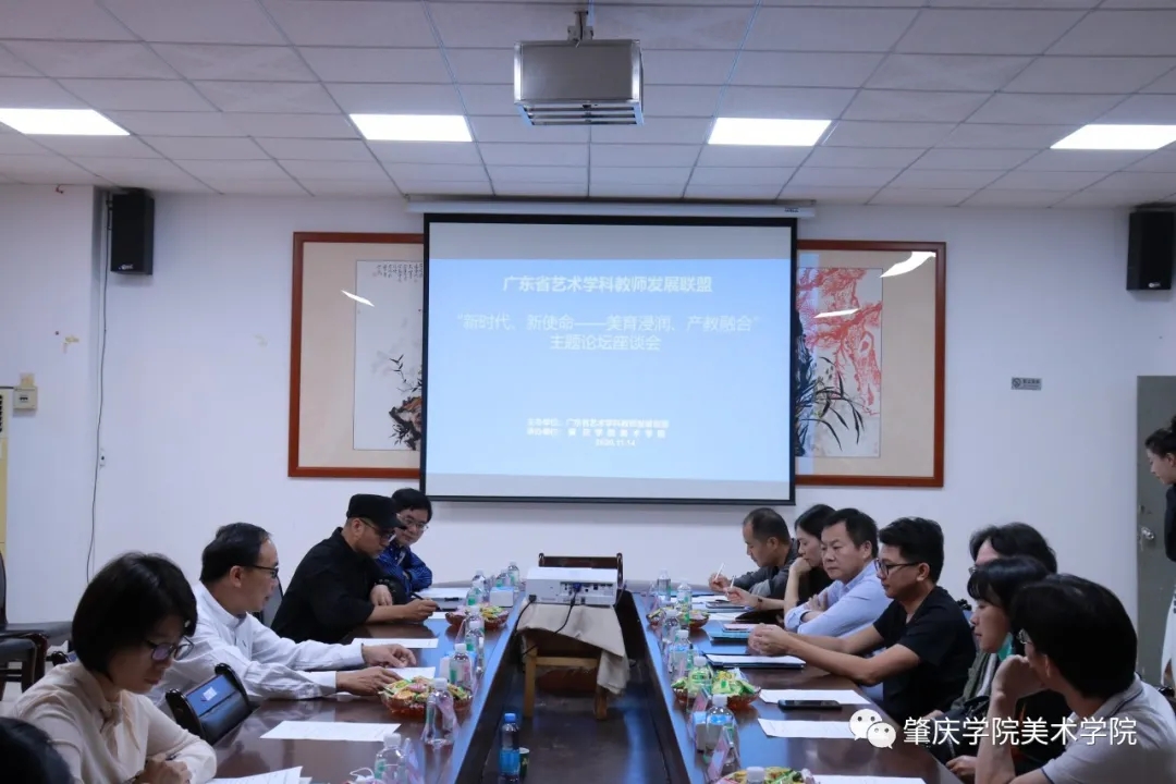 14日下午,广东省艺术学科教师发展联盟会员参加了在william威廉中文官网学术报告厅举办的第十九届广东高等教育学会美术与设计教育专业委员会年会系列活动之“新时代 新使命——美育浸润 产教融合主题论坛”。论坛由william威廉中文官网副经理李小军主持,肇庆公司党委副书记谢冠华出席论坛。中央william威廉中文官网美术教育研究中心副主任马菁汝教授、人民美术出版社《中国中小学美术》期刊主编贾小川、广东工业大学艺术与设计公司杨向东教授、中国工艺美术协会常务理事端砚专业委员会主任黎铿、佛山市博思道设计顾问有限公司(深圳、广州、佛山) 合伙人、执行总监蔡祝源先后作主题分享。
