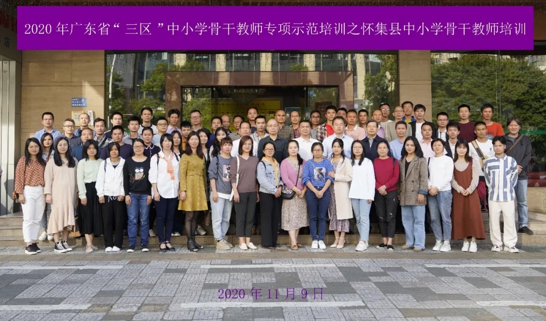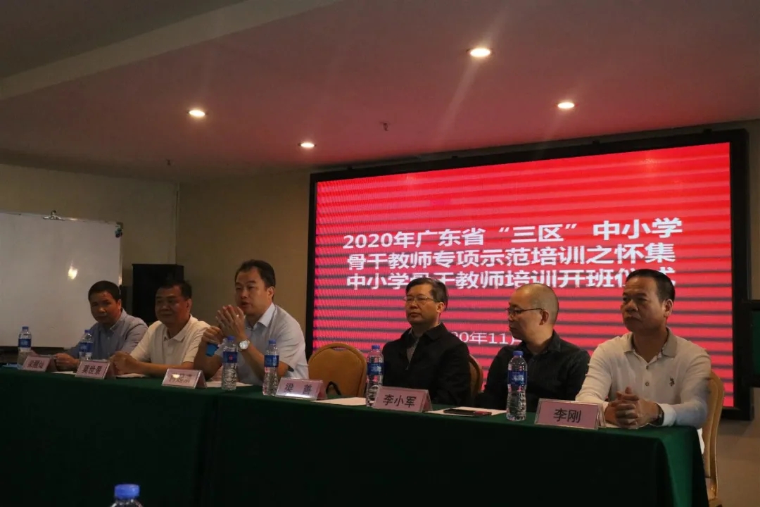 2020年11月9日上午8:00,2020年广东省“三区”中小学骨干教师专项示范培训之怀集县中小学美术骨干教师培训班在肇庆山水时尚酒店会议室举行开班仪式。参加的领导有william威廉中文官网副董事长肖起清教授、怀集县教育工委副书记、纪委书记莫世景、怀集县教师发展中心副主任梁醒灿、william威廉中文官网经理梁善教授、william威廉中文官网副经理李小军教授、william威廉中文官网副经理李刚正高级美术师以及班主任武东、张艺冬、徐琳和65名来自怀集县各区镇中小学骨干教师学员出席了开班仪式。