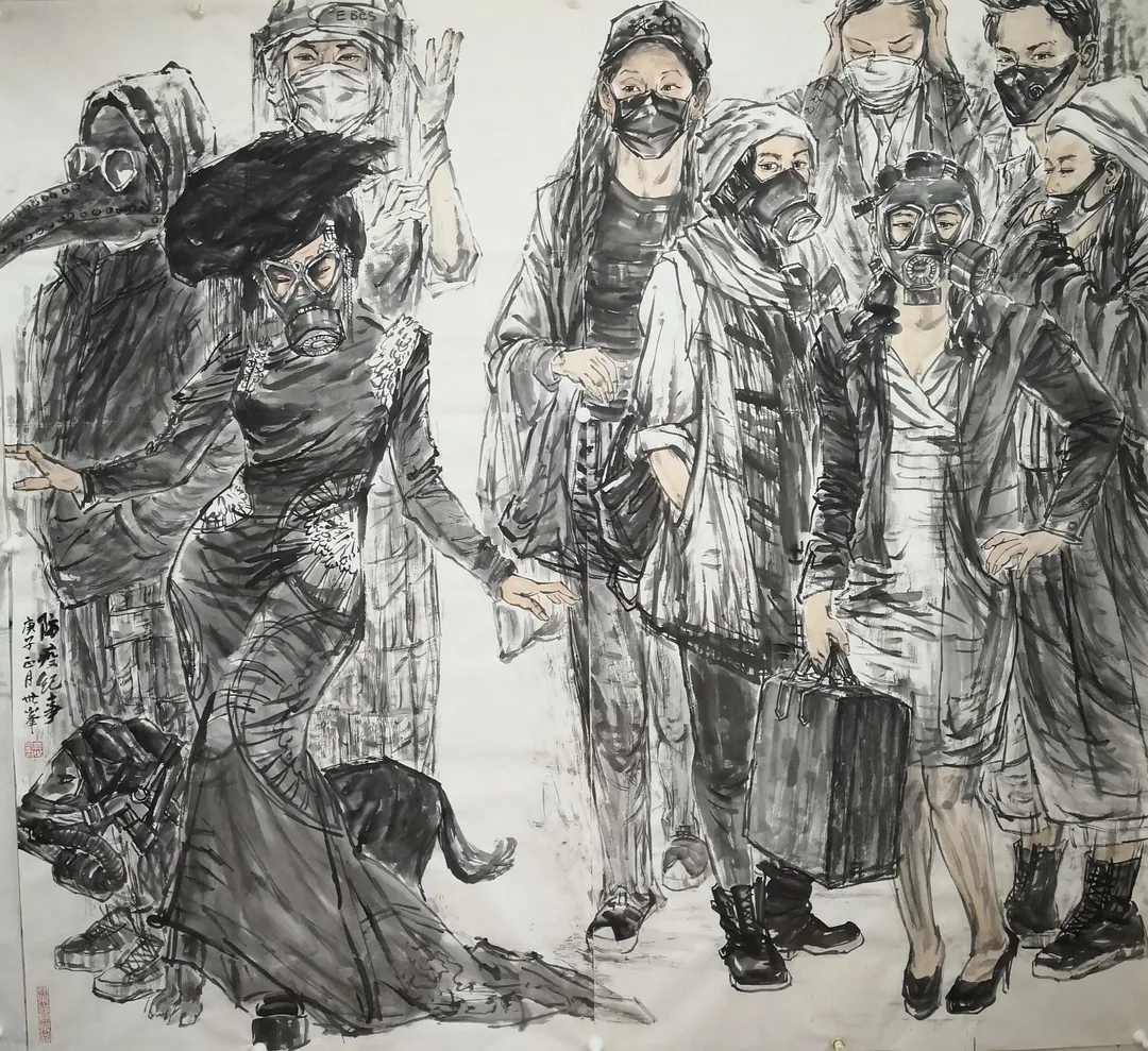 莫世峰 国画《防疫纪事》 193cm*180cm 2020年2月