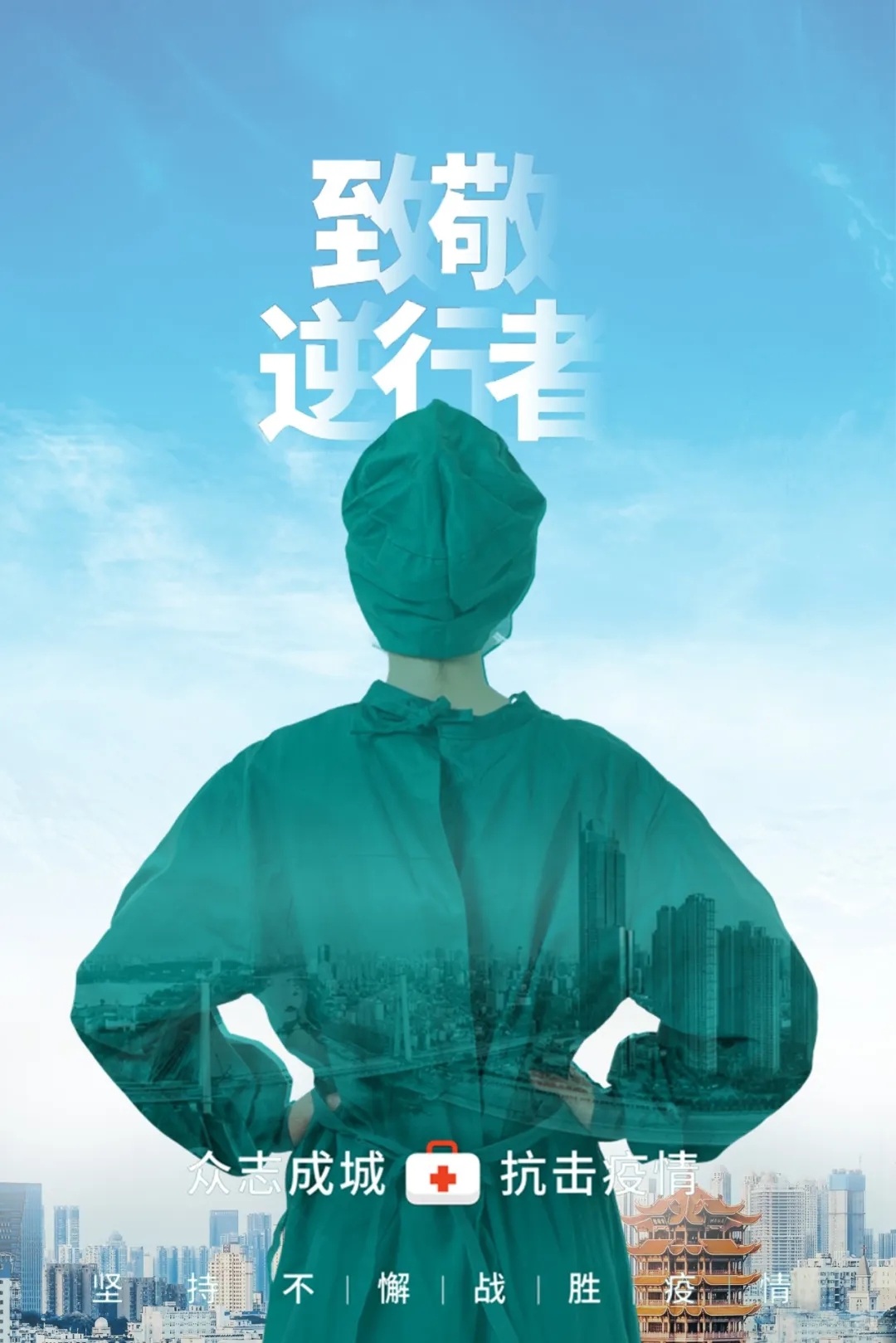 创作感想:发生重大疫情,医护人员迎难而上,他们的奔赴疫情场地的背影是最美的背影之一。他们用平凡的血肉之躯守护着城市人民的健康。他们的存在,是人们安心的保障,感谢他们的付出,让我们向最美的逆行者们致敬!