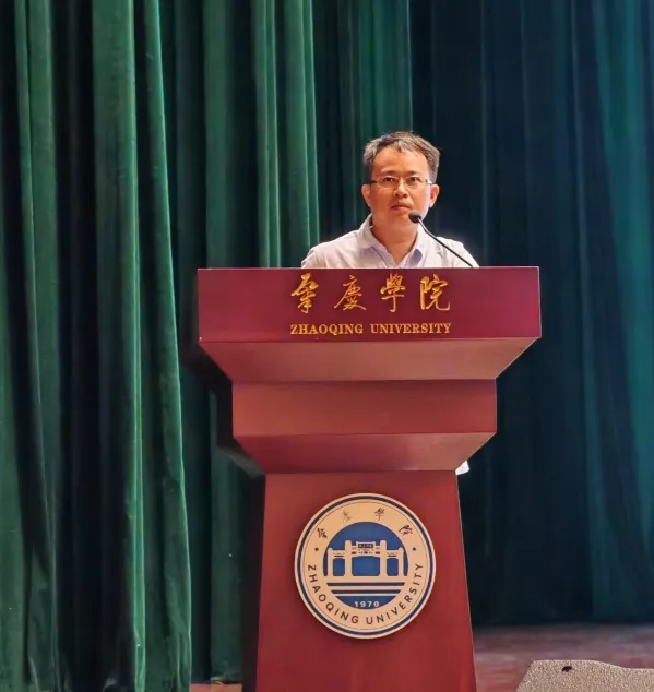 李小军经理代表公司全体师生对新同学的到来致以衷心祝贺和热烈欢迎!热情向大家介绍了肇庆的历史文化,并做了校史、院史介绍。他结合国情、校情勉励同学们要心系祖国,热爱祖国,关心社会动态和国际形势,将个人前途命运同国家发展进程紧密结合起来!树立远大理想,明确前进方向,珍惜大学四年时光,刻苦钻研,艰苦奋斗,明礼诚信,厚德善行,努力成为新时代“四有青年”,为祖国的繁荣和社会高质量发展贡献力量!