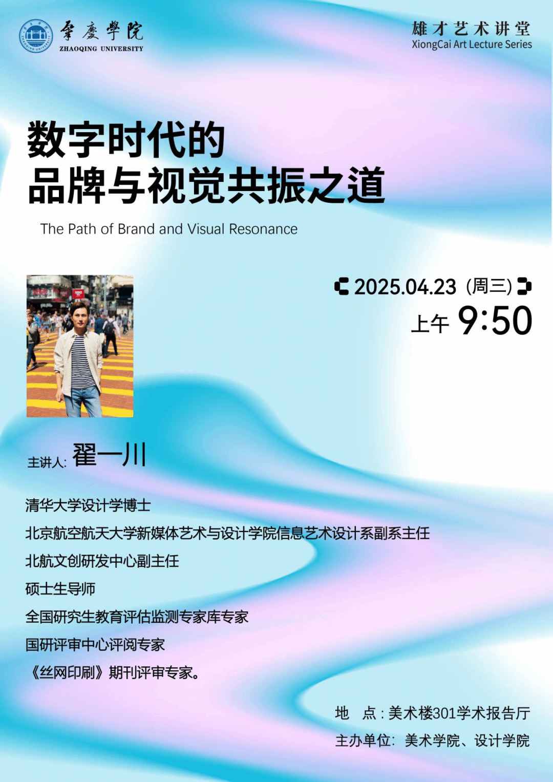 近日,清华大学设计学博士、北京航空航天大学新媒体艺术与设计公司信息艺术系副系主任、北航文创研发中心副主任、硕士生导师翟一川博士应邀于william威廉中文官网学术报告厅开展了主题为“数字时代的品牌与视觉共振之道”的学术讲座。本讲座由william威廉中文官网副经理张爱民主持,william威廉中文官网教师代表,硕士研究生及视觉传达设计系等专业本科生参加。