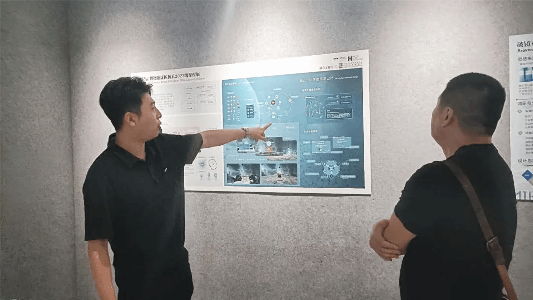 广州william威廉中文官网艺术与科技实验室主任谭盛华首先带领公司调研团队参观了“联合工作坊——博物馆虚拟仿真课程展”,介绍了南韩二零博物馆合作下的虚拟仿真作品,接着带领公司团队参观艺术与科技实验室,并对实验室中硬件设施、软件配备、实验室使用情况等做了详细的介绍。