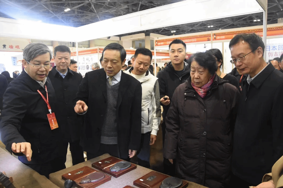 中国文房四宝协会陈建国会长、中国文房四宝协会终身名誉会长郭海棠、肇庆市委宣传部长刘海斌到公司端砚作品展区参观