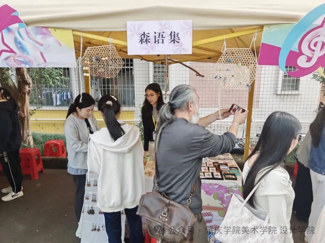现场人头攒动的热闹景象,正是对同学们创意与努力的最好肯定。员工们带着家人前来支持,同学们呼朋引伴打卡逛展,砚园市集的辐射力不断延伸。大家在摊位前驻足交流,为创意点赞,为青春喝彩,原本分散的个体因这场市集紧密相连,“社区”的温度在互动中不断升温。