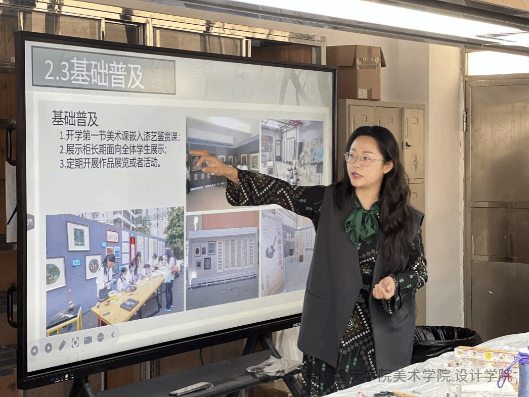 本次系列专题讲座涵盖课程教学、教研科研、非遗活化、项目申报、论文撰写等多方面内容,强调将中华优秀传统文化与中小学美育深度融合,为工作室成员提供了理论指导与实践启发,为各分工作室未来的建设奠定了坚实基础。