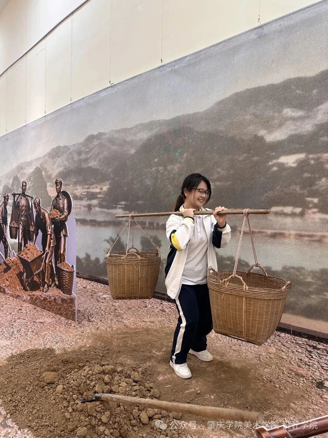 展览分为“星湖纪实”“星湖荟萃”“星湖怀古”三个篇章,通过国画、油画、水彩、摄影、端砚等多种艺术形式,呈现了星湖“山、水、林、湖、岩、洞、文”于一体的自然人文之美。沉浸式体验区通过场景复原与现场体验,生动再现了“万人挖星湖”的历史场景,让同学们身临其境地感受到那段艰苦奋斗的壮阔岁月。