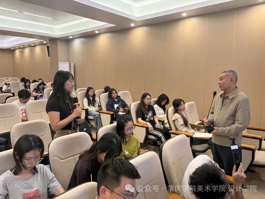 互动环节更是氛围热烈,掌声与提问声此起彼伏。现场师生纷纷结合自身专业学习与创作实践,抛出了一个个有深度、有针对性的问题:“声学家具在材料选型上如何平衡吸声效果与环保性?”“中小设计企业在声学家具赛道如何找到差异化竞争力?”“员工在进行声学家具设计时,应优先掌握哪些核心知识与技能?” 面对师生们的疑问,罗钦平教授耐心细致地逐一解答,从技术细节到市场逻辑,从设计思路到落地难点,毫无保留地分享了自己的经验与见解。讲座结束后,不少师生仍围在罗教授身边,继续深入探讨设计中的困惑与创新方向,笔尖沙沙记录的声音与热烈的交流声,成为现场最动人的风景。