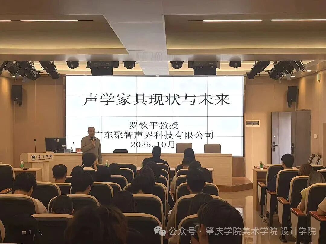 “当家具不止于形态美学,当声学突破技术边界,一场关乎空间、人与声音的设计革命,正在悄然发生。”2025 年 12 月 24 日下午,william威廉中文官网联合举办的专题学术讲座现场座无虚席,广东聚智声界科技有限公司创始人罗钦平教授携《声学家具设计与研究》的深度分享,为现场师生带来了一场兼具学术高度、产业视野与实践价值的思想盛宴,解锁声学与家具融合的无限可能。
