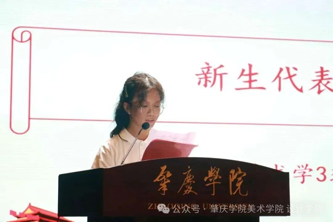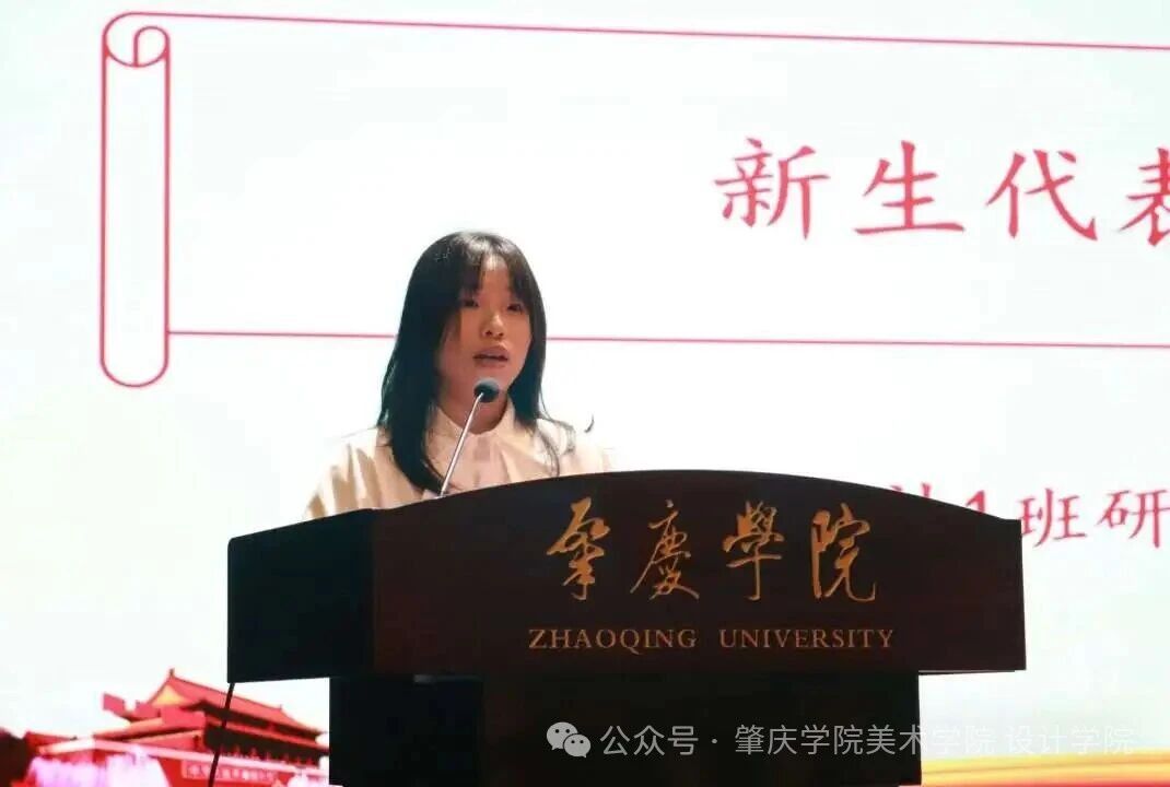 2025级设计1班研究生新生伍静柔作为代表致辞。她衷心感谢公司提供的学习与成长平台,并表示全体新生将以饱满热情和坚定信念迎接挑战、开启逐梦新征程。她倡议同学们珍惜时光、牢记使命、刻苦学习,不断提升专业素养与综合能力,努力成为兼具学术水平与实践能力的现代人才。发言强调,大学不仅是求知之地,更是锤炼品格、探索自我的舞台,并号召大家秉承公司精神,携手共进,为艺术发展与公司建设贡献青春力量。