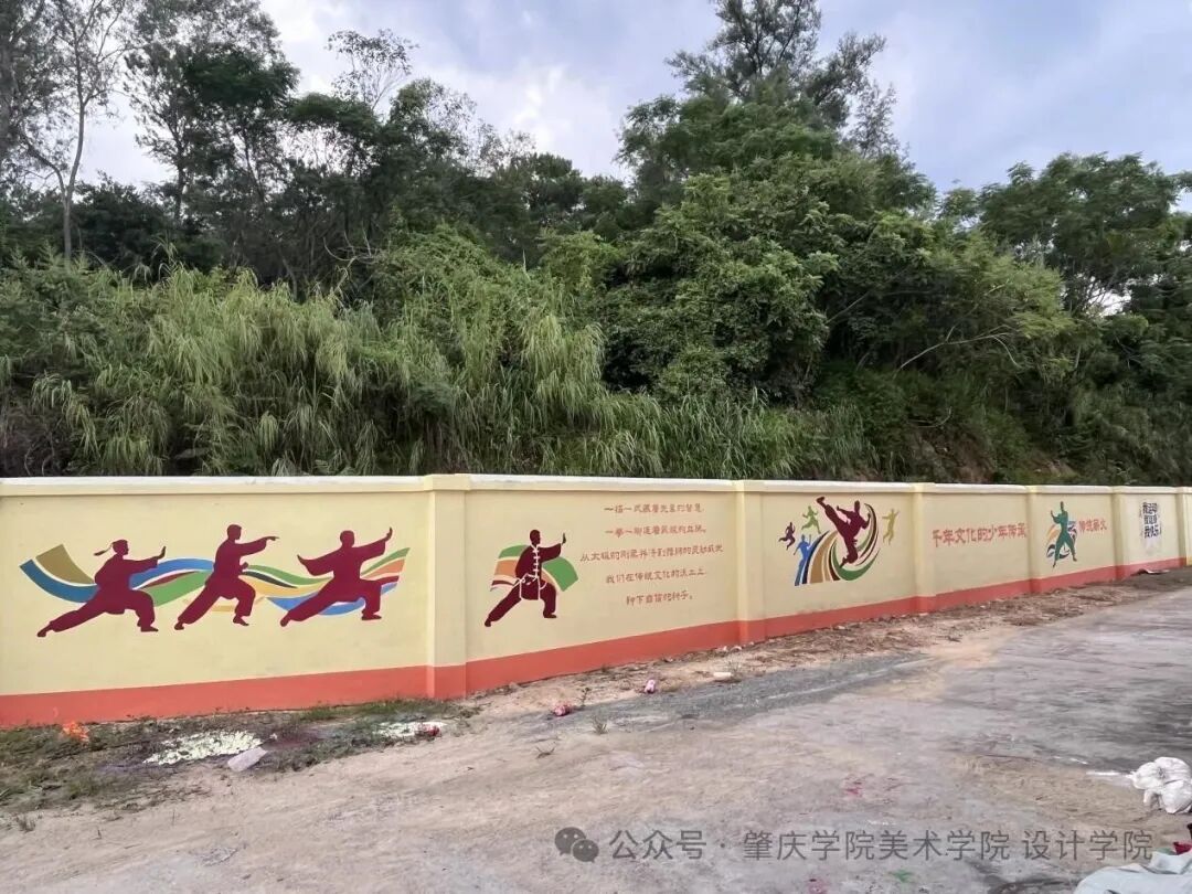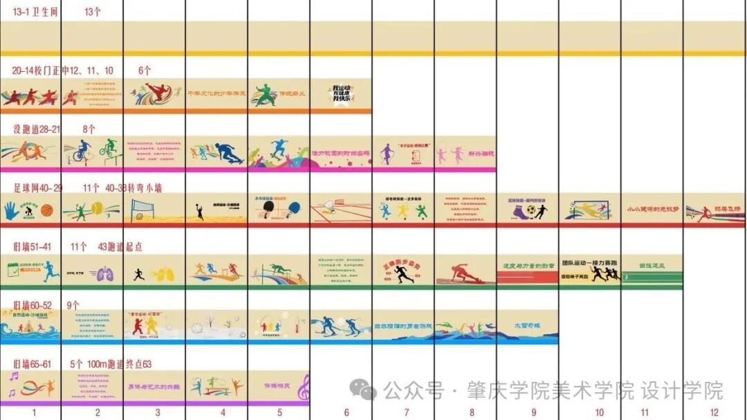 在足球场沿线围墙,实践团以《义务教育体育与健康课程标准(2022年版)》中的6类运动为核心,打造多组主题墙绘,每组搭配专属名称与育人文案