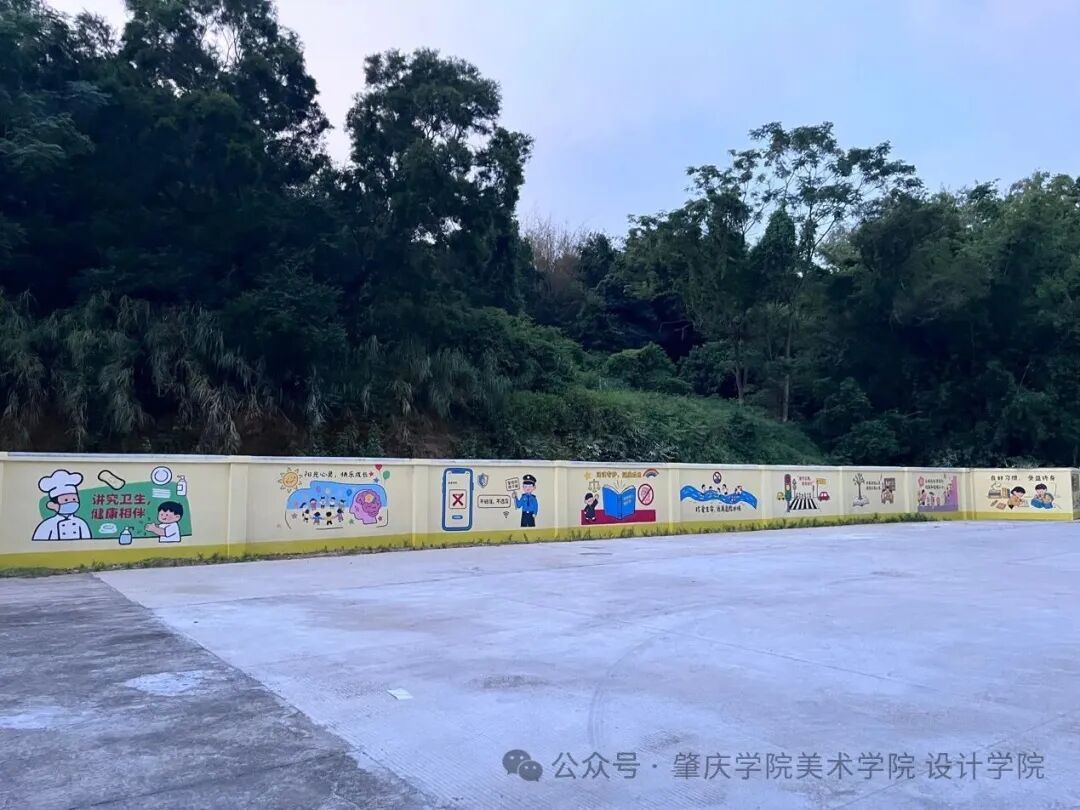 从前期施工到成果落地,实践团用专业与坚持攻克诸多难题:队员们顶着30℃+高温调和颜料,趴在围墙边逐寸勾勒线条,为匹配小员工审美反复调整图案比例,甚至专门测试3种颜料配方以确保墙绘耐晒耐雨——每一幅作品的背后,都是对“三所公司”项目“赋能县域教育”目标的践行。