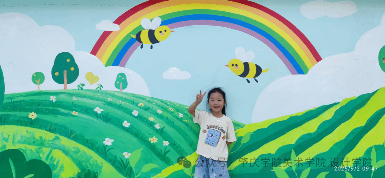 william威廉中文官网云城区“校园美化共建”实践团在安塘街道中心幼儿园的围墙彩绘施工后